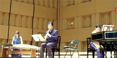 が、創意工夫は自力でしなければいけませんので、譜面とにらめっこしながらチューニングの設定研究をし、筝らしいニュアンスを加味するという宿題を解決し、その他諸々をクリアさせましてフルート・ピアノ・筝による『子守唄風サマータイム』が完成したのでした。