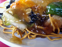 そうです、あの油で揚げた麺の上にあんかけがのっかっているヤツです。