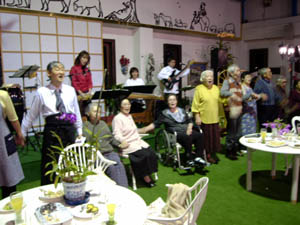最後は全員で手をつないで「ふるさと」の大合唱。皆さん、ご高齢とは思えない元気な歌声での熱唱でした。こんなにマジメに「ふるさと」を演奏したのは小学校以来かもしれません。