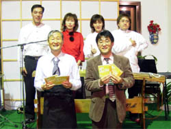 我々のステージ衣装は基本的に宮崎さん以外は、上が白、下が黒と決めているのですが、この日宮崎さんは真っ赤なブラウス。なんだか白いご飯に黒い海苔、そして真っ赤な梅干を連想してしまって・・・(^^ゞ