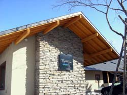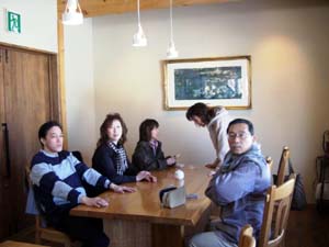 左:お店正面。店のすぐ近くには池と橋がありました。わかさぎ釣りとか出来そうな感じ。