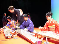 宮崎さん曰く、「着物で椅子に腰掛けて箏を弾くのってとっても難しい」とのことでした。 |
