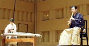 今回のゲスト演奏者、菅原久仁義さん(尺八、東京)、松永鉄九郎さん(三味線、東京)、
