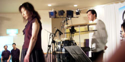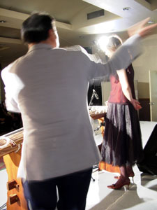 右の写真は、司会の志摩アナウンサーがまさに「ケーズクルーの皆さんでーす!」と紹介してくれた瞬間。 (うーん、説明しないとわからんな・・・)