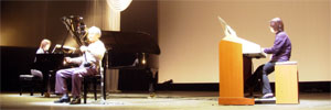 今回、明田さんは電子オルガンとピアノとの共演。
