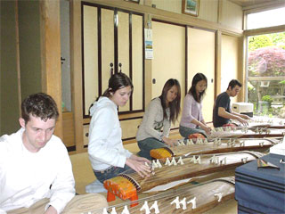 北海道教育大学函館校に留学中のカナダ・オーストラリア・中国からの学生10名が、5月18日・25日・6月1日の3回、日本文化実習の授業として我が家で筝の演奏を体験しました。