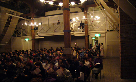 ▲本番直前の会場の様子。用意した席はほぼ満杯でした。