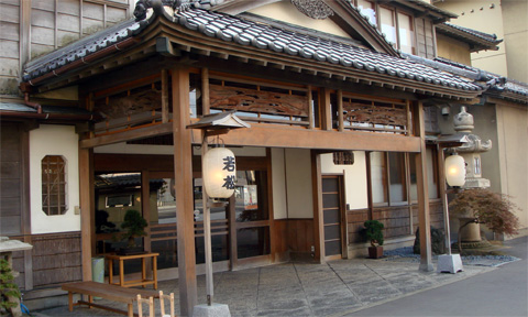 老舗の割烹旅館・若松は、玄関前の風情からして歴史を感じさせてくれる落ち着いた雰囲気でした。