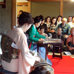 アンコールでは「アリラン」の演奏に重ねて日本の歌「ふるさと」を箏で弾き、お客様に歌っていただきました。