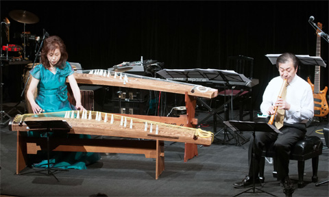 2曲目、十七弦・尺八二重奏 江戸信吾作曲「木立の中で」。